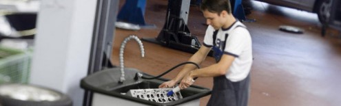 Durante los procesos productivos en la industria hay que limpiar millones de piezas con medida previa a la aplicación de capas o a su montaje final. Las exigencias que plantea este sector en cuanto a la eficacia limpiadora, la protección de superficies y la ausencia de residuos son extraordinariamente elevadas. Kärcher ha desarrollado a tal efecto unos detergentes específicos y altamente eficaces que alcanzan unos excelentes resultados tanto en las lavadoras de piezas clásicas como en las lavadoras de piezas con agentes biológicos PC Bio 100 y PC Bio 200 galardonadas en la Feria del Automóvil con el premio «Automechanika Award». Todos los detergentes de las lavadoras de piezas de Kärcher estan exentos de ácido nitriloacético y disolventes (compuestos orgánicos volátiles COV). |