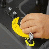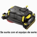 2xCepillo circular estándar, Sistema de depósito, Conexiones eléctricas de carga, Tobera con labios estándar de succión, Manguera de desagüe, Juego de baterías, Cargador de baterías, Cabezal D-65 (2.763-003.0) con conexiones rápidas, Pedales de expulsión fácil de los cepillos, Indicador de nivel de agua, Desplazamiento de la máquina por motor de tracción (hacia adelante y hacia atrás), Interrupción automática de la alimentación de agua de los cepillos, Filtro plegado plano para protección de la turbina, Interruptor EASY Operation, Claxón, Asiento con dispositivo identificador del operario. |