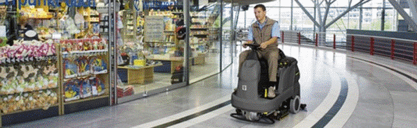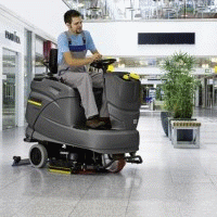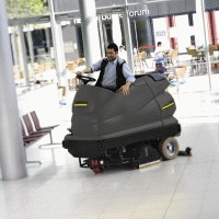 Con esta fregadora-aspiradora con conductor de Kärcher®, el trabajo se realiza más fácil y rápidamente. Es estrecha y muy maniobrable, por lo que ni las puertas estrechas ni los pasillos suponen un obstáculo. |